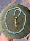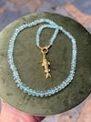Aquamarine Beaded Necklace with Gold Plated Silver Fish Charm