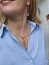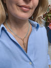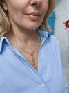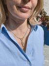 This delicate aquamarine beaded necklace features soft, icy blue gemstone beads paired with a charming gold-plated sterling silver fish pendant. Inspired by the sea, this piece blends natural elegance with a playful coastal touch—perfect for everyday wear or layering.